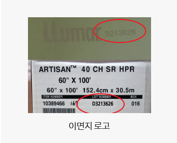 (필름 박스 라벨의 로트번호와 원단 이면지의 로트번호가 일치함)